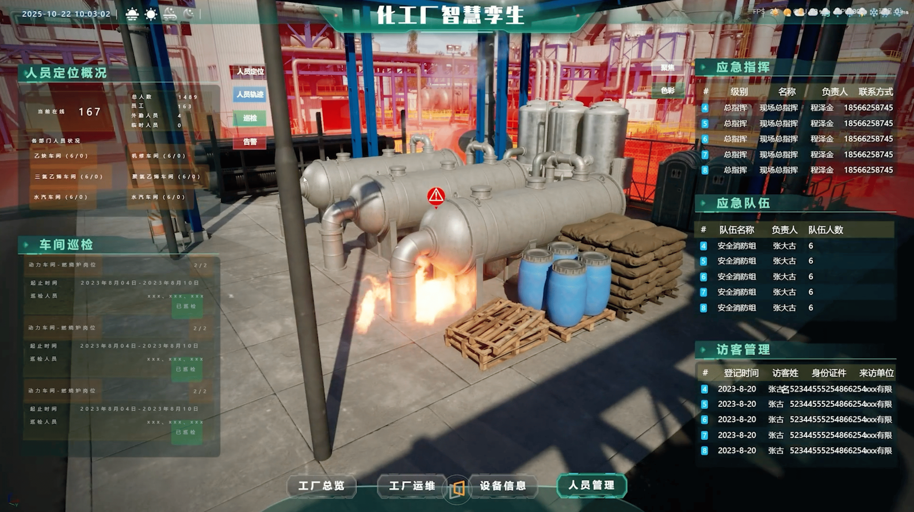 在三维场景上融合应急保障单位分布、物资储备、警情信息、警情分析、可调派力量、案件数据、作战力量、当日值班等数据,实时监测警情与灾害态势,结合GIS定位与大数据分析,提供智能决策支持。