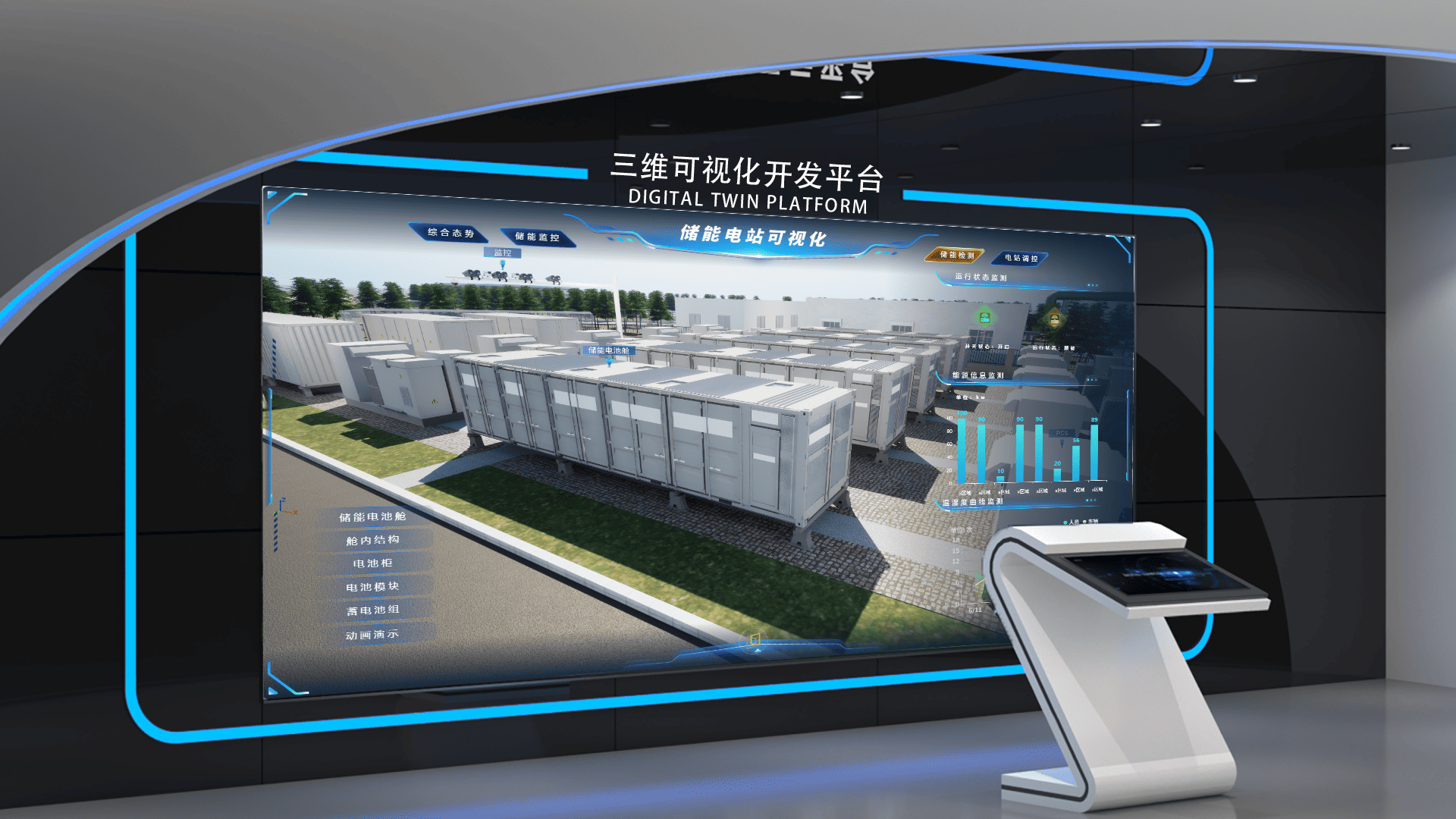 本项目以某300MW/600MWh储能电站为对象,通过CIMPro孪大师数字孪生平台,整合BIM模型、GIS地理信息及IoT实时数据,实现电站运行状态的全息映射,支持电池堆充放电过程动态模拟,实现温湿度曲线、功率波动等数据的多维度交互展示,快速生成工单管理、故障预警等业务模块,形成“监测-分析-调控”闭环,助力电站运维效率提升。