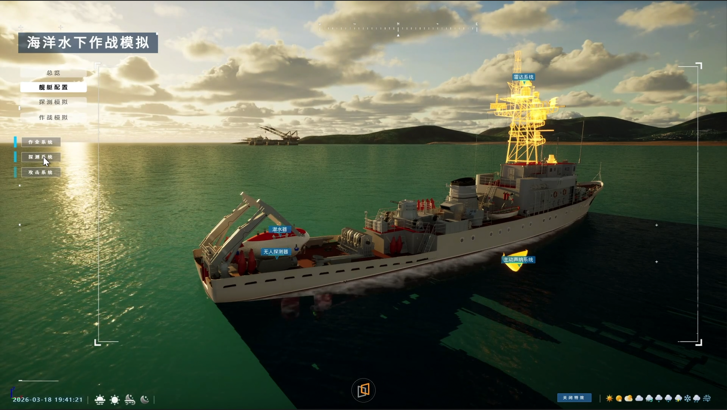 提供由浮标、灯塔、渔船、货船、军舰等多种模型组成的海洋场景模型库,拖拽方式实现场景丰富度的提升,便捷化完成场景和目标模拟。